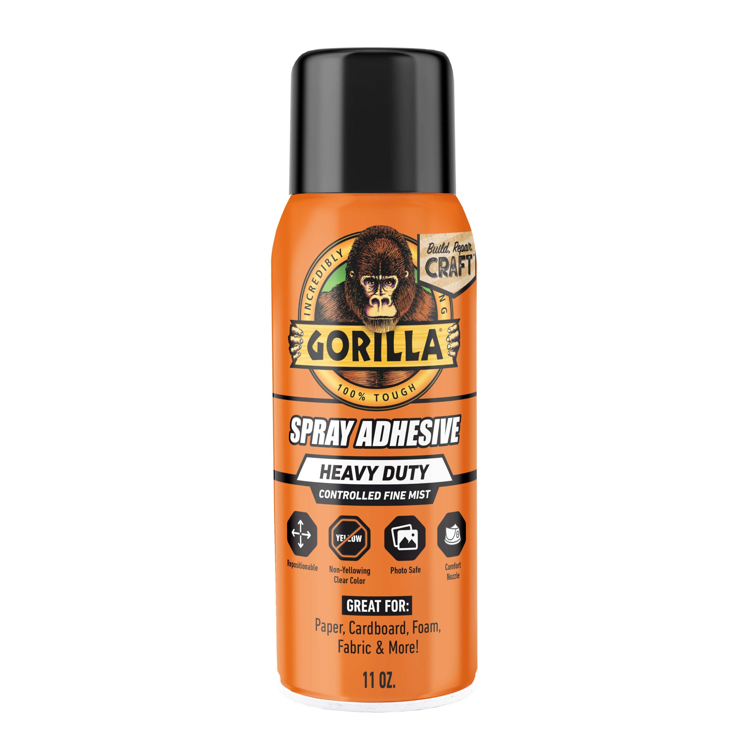 גורילה ספריי רב שימושי פרמננטי שקוף HEAVY DUTY לאומנות ומייקינג. דבק ספריי גורילה חזק, רב תכליתי, נוח וקל לשימוש. עמיד בפני לחות וניתן להשתמש בו בפרויקטים הן בפנים והן בתנאי חוץ. בטוח לצילום. פיית הרפידה הרחבה שלו ותרסיס עדין מבוקר מספקים יישום אחיד בפרויקטים השונים. גימור אסתטי בזכות התזה עם פיזור אחיד.